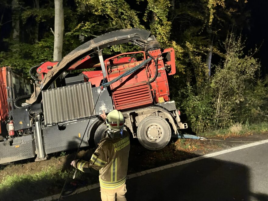 Am späten Nachmittag wurde zu einer Fahrzeugbergung alarmiert. Ein LKW war auf einer Forststraße ins Rutschen gekommen.